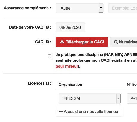 Enregistrement de vos membres avec les informations necessaires à nos activités de plongeurs (niveaux, date de CACI, n° de licence ...)